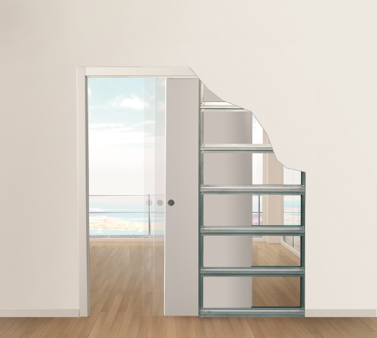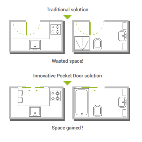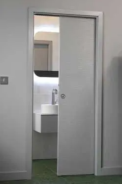 A popular alternative to wall mounted sliding tracks is the pocket door system.